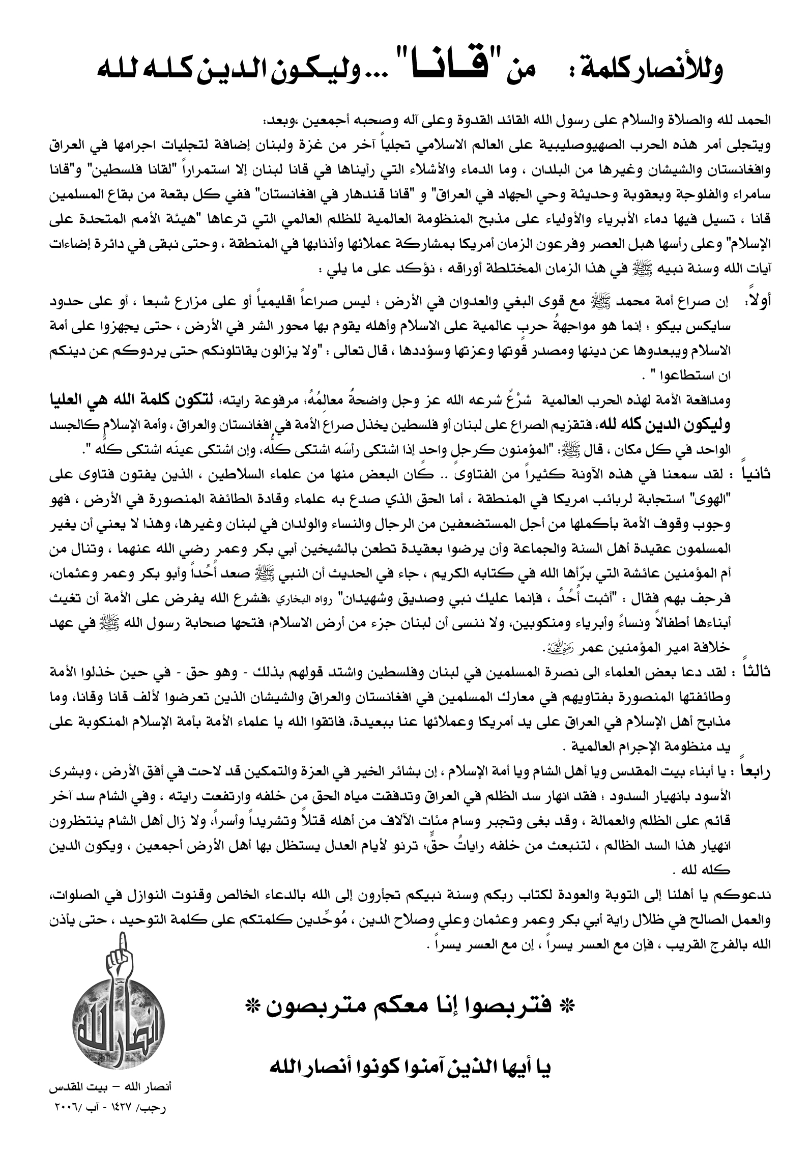 الإمبراطورية لن تكون بتلك المساحة التي أشار إليها بوش وإنما وعد الله أن هذا
